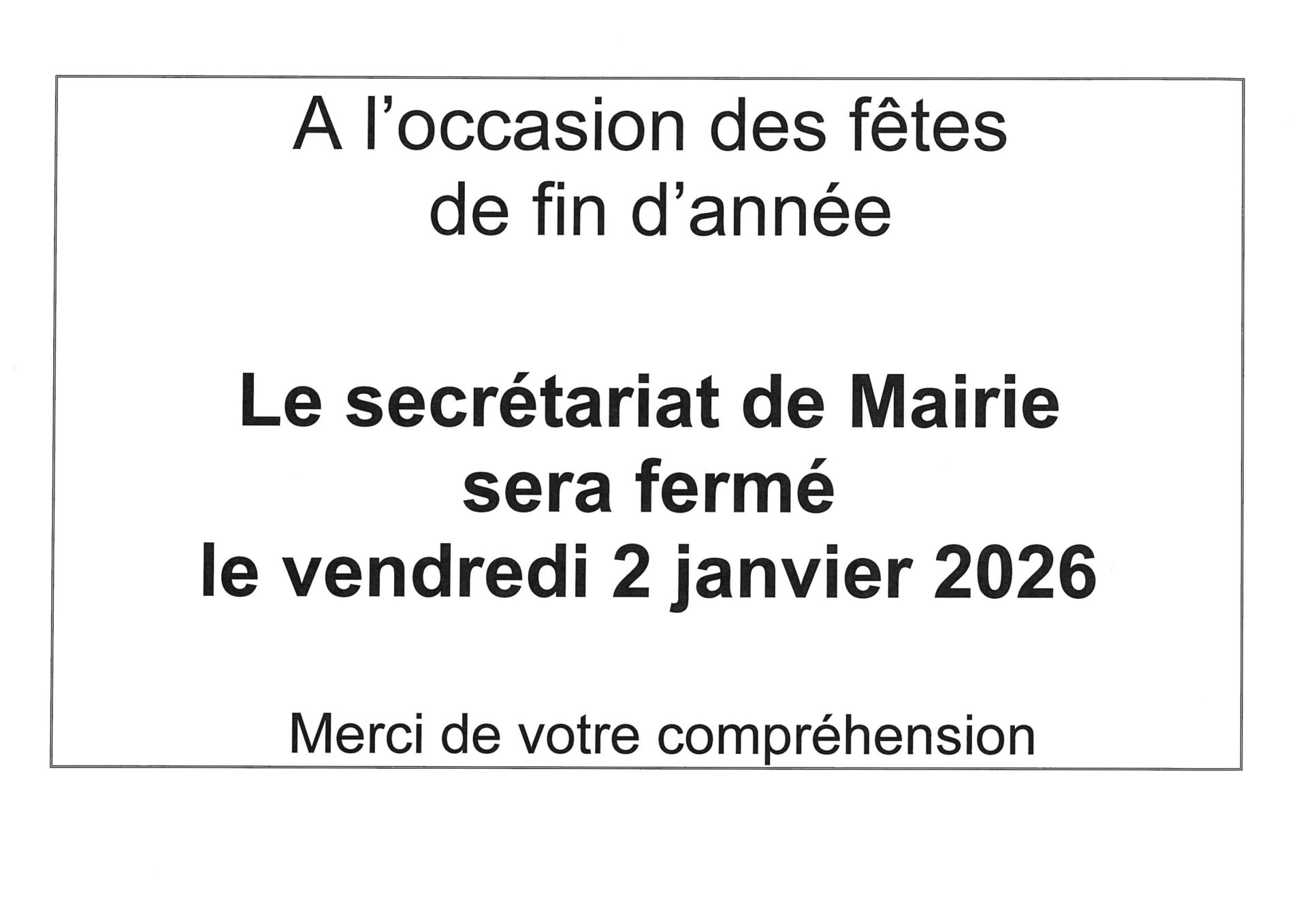 Fermeture exceptionnelle de la Mairie